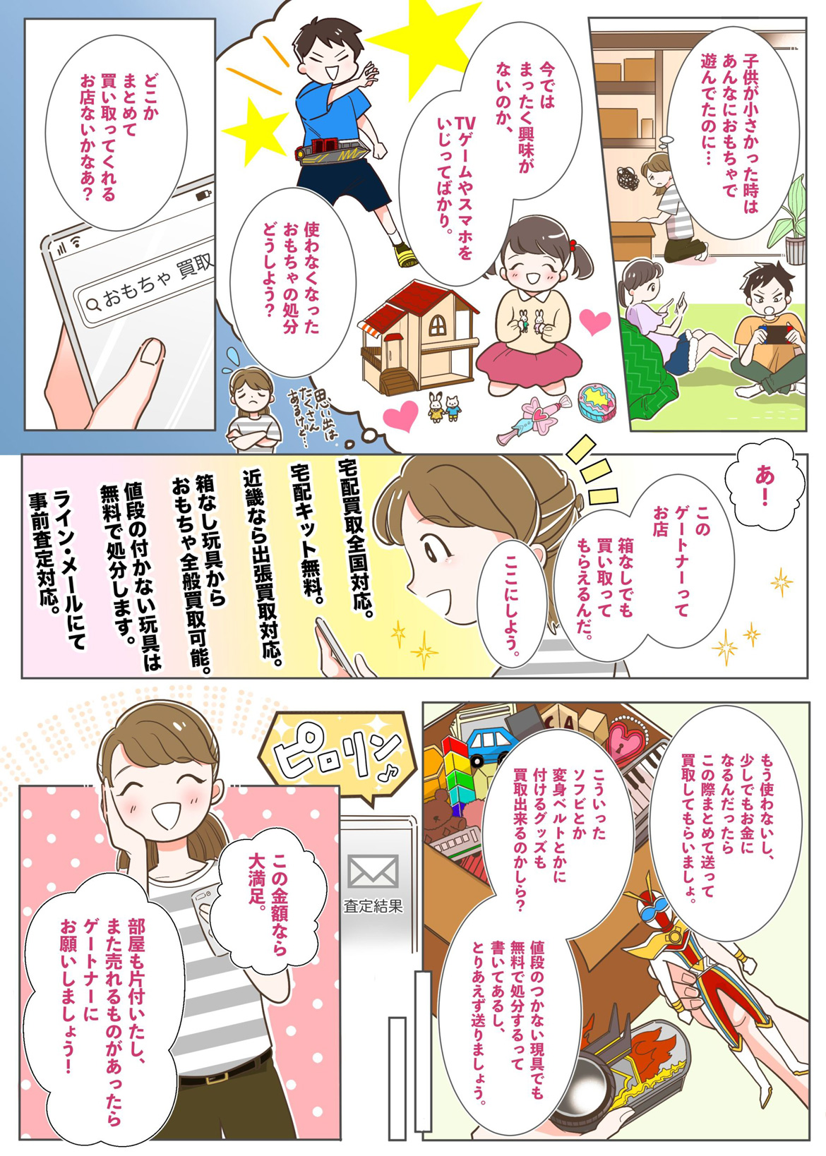 全国対応の宅配買取は送料無料/査定料無料/振込手数料無料で、コレクション一括売却やシリーズまとめ査定に柔軟対応しています。